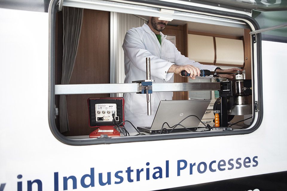 El laboratorio móvil está diseñado especialmente para actuar en instalaciones de cliente que precisan ensayos de certificación de calidad en una localización y momento críticos, como línea de montaje, línea de vuelo y/o postventa.
